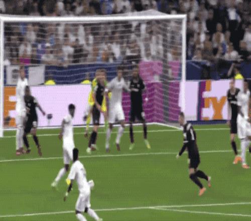 第15分钟,皇马获得角球,琼阿梅尼的头球顶得太正,门将候个正着。