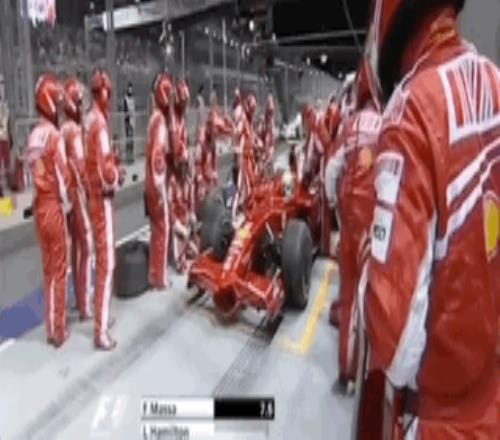 2008赛季的新加坡大奖赛,是F1历史上第一场夜间街道赛。当时的比赛还没有取消进站加油,马萨驾驶法拉利轻载油从杆位起步,比赛开始后他状态神勇,看似正朝着分站冠军甚至年度车手冠军稳步前进。