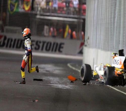 事后第一时间,小皮奎特解释称撞车是“操作失误”。但一年后,当他被雷诺解雇,真相才浮出水面——那是一次有预谋的“战术撞车”,由车队负责人布里亚托利和西蒙斯下令,目的是制造安全车时机帮助阿隆索获利,而发生撞车的17号弯也是预谋中的重要一环,因为那边没有吊车,赛会只能出动安全车。
