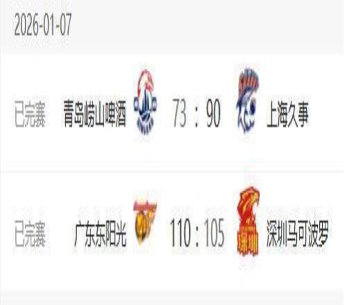 CBA常规赛,1月7日晚上只安排了2场比赛,其中广东队在主场以110-105战胜深圳队,上海队在客场以90-73战胜青岛队。这两场比赛过后上海队的战绩10胜2负,稳居常规赛第一,广东队同样是10胜2负的战绩排名第二;青岛队遭遇二连败,目前他们8胜4负排名第四,已经跌出了常规赛战绩的第一梯队。