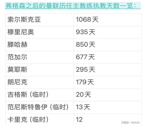 执教时间最长的是索尔斯克亚,这名红魔曾经的超级替补获得了1050万欧的解约金,如今依然处在待业状态中。