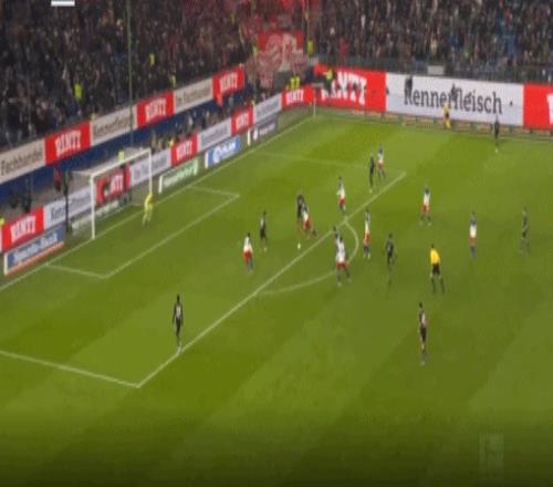 6分钟之后,基米希禁区内拼抢时,被吹罚犯规,主裁给了汉堡点球,维埃拉主罚命中,帮助主队取得了1-0的领先,不过第42分钟凯恩门前的转身抽射建功,让双方很快就1-1回到了同一起跑线,半场结束之前,凯恩助攻格纳布里反超比分,但越位在先导致进球被取消。