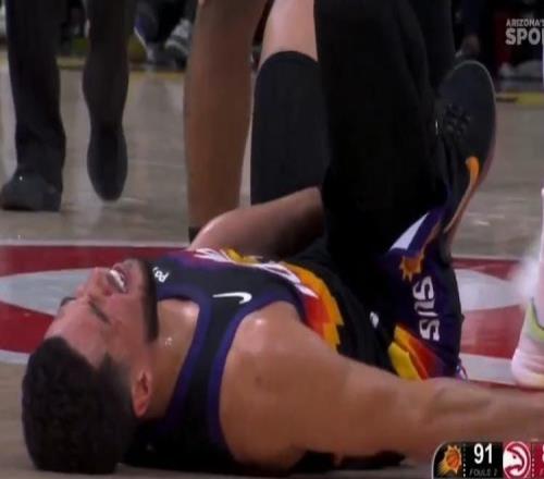 雪上加霜,布克90度崴脚伤退太阳一场伤俩主力,离场前三节就得31分 -